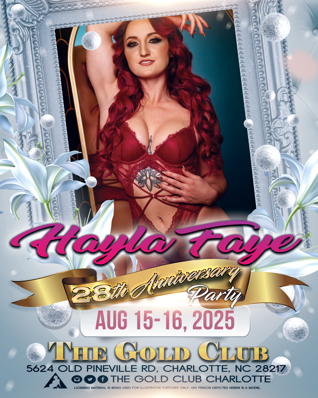Home Events - MAL Entertainment Club Events Feature Entertainer The Gold Club 28th Anniversary Party w/Hayla Faye! The Gold Club 28th Anniversary Party w/Hayla Faye! The Gold Club 28th Anniversary Party w/Hayla Faye! Aug. 15th and 16th in Charlotte, NC + Add to Google Calendar + iCal / Outlook export The event is finished. Date Aug 15 - 16, 2025 Expired! Time All Day Labels Featured Location The Gold Club 5624 Old Pineville Rd, Charlotte, NC, USA Category Club Events Feature Entertainer Share this event X