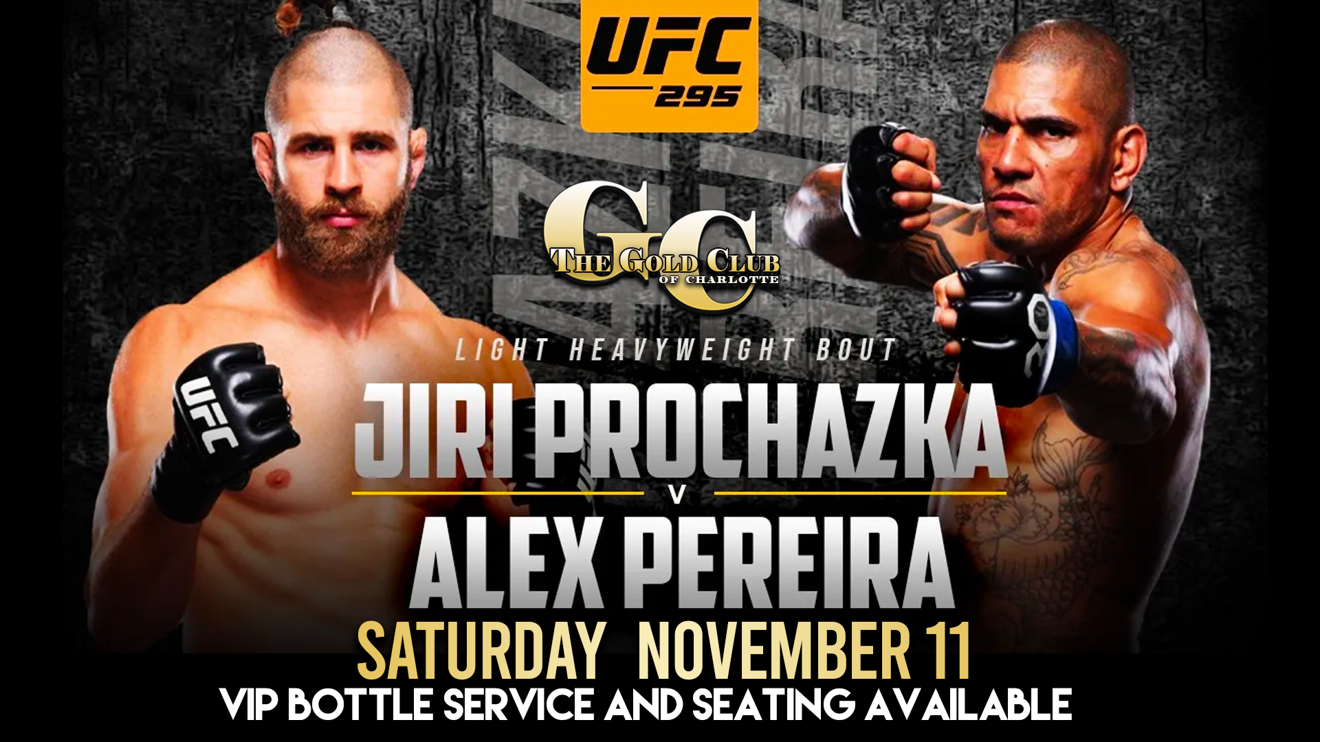 Home Events - MAL Entertainment Club Events UFC 295 UFC 295 UFC 295 – Saturday November 11 VIP Bottle Service and Seating Available at The Gold Club in Charlotte, NC + Add to Google Calendar + iCal / Outlook export The event is finished. Date Nov 11, 2023 Expired! Time All Day Labels Featured Location The Gold Club 5624 Old Pineville Rd, Charlotte, NC, USA Category Club Events Share this event X