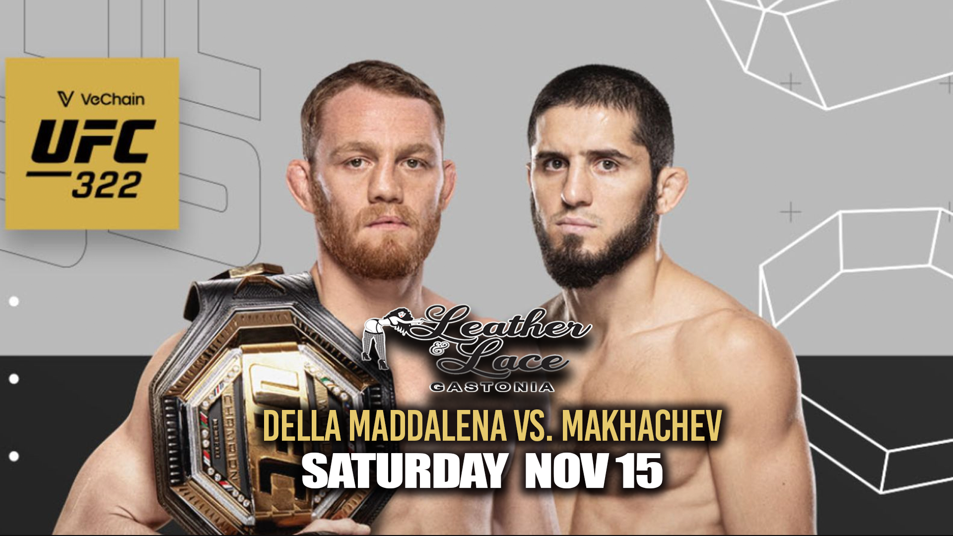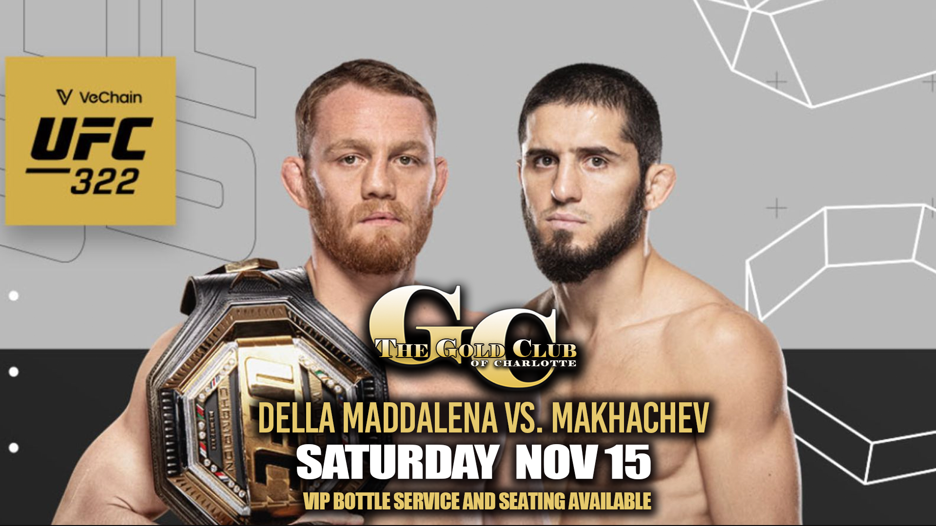 Home Events - MAL Entertainment Club Events UFC 322 UFC 322 UFC 322 – LIVE on PPV – Saturday, Nov. 15th at The Gold Club in Charlotte and Leather & Lace in Gastonia, NC. + Add to Google Calendar + iCal / Outlook export Date Nov 15, 2025 Time All Day Location The Gold Club 5624 Old Pineville Rd, Charlotte, NC, USA Other Locations Leather & Lace - Gastonia Leather & Lace Gastonia, 512 W Main Ave, Gastonia, NC, USA Website https://malentertainment.com/our-clubs/leather-lace-gastonia/ Category Club Events Share this event X
